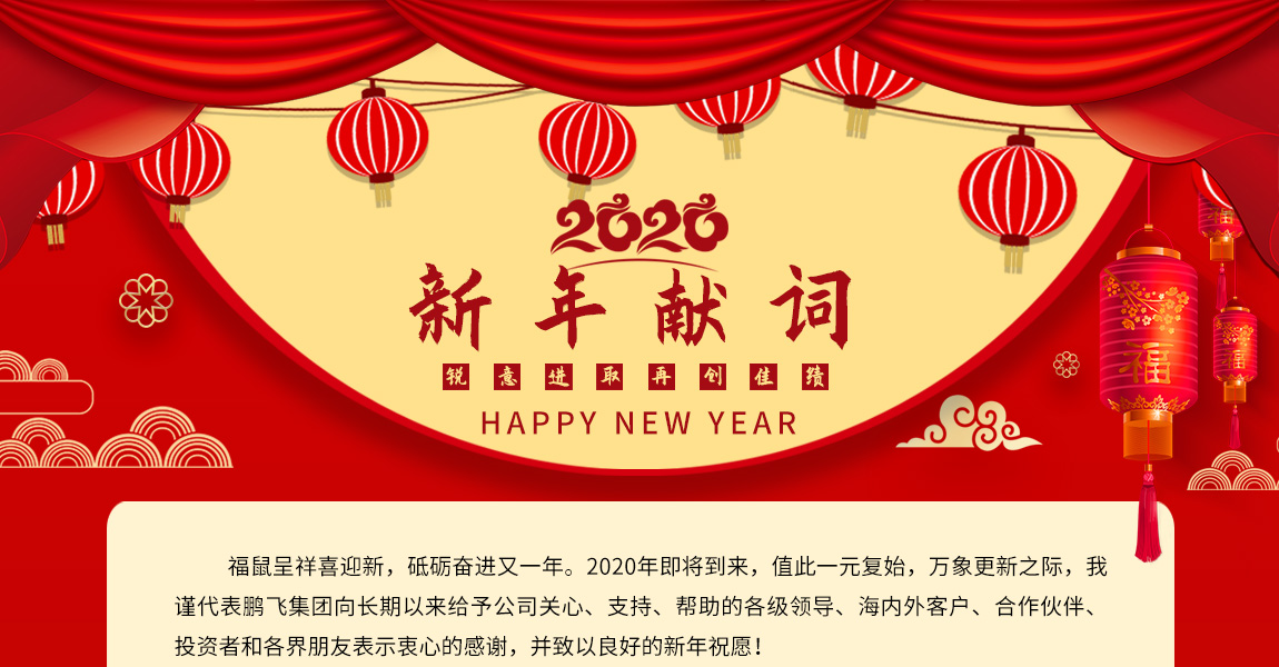 福鼠呈祥喜迎新,砥礪奮進(jìn)又一年。2020年即將到來(lái),值此一元復(fù)始,萬(wàn)象更新之際,我謹(jǐn)代表鵬飛集團(tuán)向長(zhǎng)期以來(lái)給予公司關(guān)心、支持、幫助的各級(jí)領(lǐng)導(dǎo)、海內(nèi)外客戶、合作伙伴、投資者和各界朋友表示衷心的感謝,并致以良好的新年祝愿!