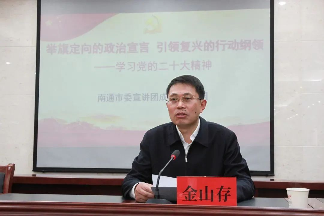 大公鎮(zhèn)黨委書記金山存主持報告會。就抓好黨的二十大精神的學習宣傳貫徹工作,金山存強調(diào),一是持續(xù)掀起學習二十大精神新高潮。要堅決把黨的二十大精神學習宣傳貫徹工作層層落實到企業(yè)發(fā)展中,落實到各項工作實踐中。二是持續(xù)激發(fā)貫徹二十大精神強動力。要把黨的二十大精神貫穿到企業(yè)發(fā)展全過程各方面,全面貫徹新發(fā)展理念,積極融入和服務(wù)新發(fā)展格局。三是持續(xù)凝聚落實二十大精神大合力。要在發(fā)展質(zhì)態(tài)上精準契合二十大,強化企業(yè)龍頭帶動效應(yīng),推動企業(yè)做強做優(yōu)做大,以實際行動為“百億大公”建設(shè)貢獻力量!